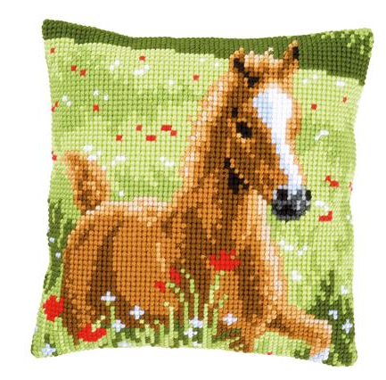 kruissteekkussen dartelend veulen